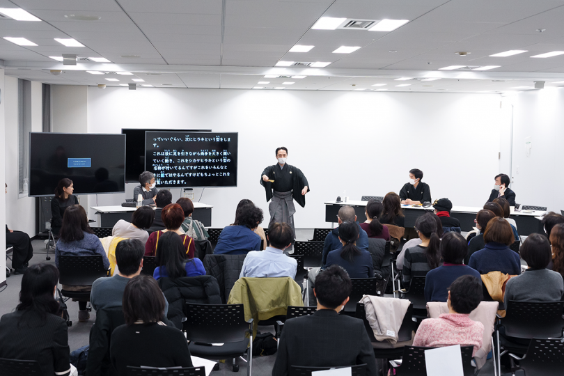 2023年2月7日、「芸術文化による社会支援助成」の意義や効果をあらためて検証し、その成果や今後の課題などを広く共有する場として、第3回となる活動報告会が開催されました。「公益財団法人 十四世六平太記念財団」が運営する喜多能楽堂では、聞こえる人も聞こえない人も一緒になって能狂言が楽しめる「“手話”で楽しむ能狂言鑑賞会」が毎年開催されています。この活動の中から生まれてきた「手話能」をテーマに、レポート前編では、企画制作の視点から喜多能楽堂館長・清水言一さん、能楽師の視点から大島輝久さんと三宅近成さんによる実演を交えた発表についてお伝えしました。後編では、参加者も交えたラウンドテーブルの様子をお届けします。