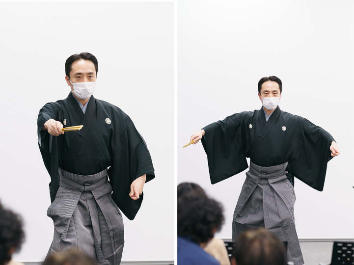 - 我々はすべての型をやっているので、型をやっている途中に手話を挟むということは、今回の手話能では一切しておりません。つまり、体の動きがないところで手話を入れているということです。ですから我々が、例えば「シカケ ヒラキ」みたいな型を手話で作り変えるということは一切していないんです。型をあまりご存知ない、手話を主に知っている人から見たときでも、多分混乱は生じないだろうと思っておりますが、今後そういった場面に遭遇することはあるかもしれませんね。