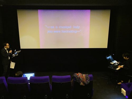 活動写真弁士は最年少弁士の尾田直彪(おだたかとら)が務め、楽士(ピアニスト)はこの分野での評価と実績のある神﨑えり(こうざきえり)と鳥飼りょう(とりかいりょう)が務めた。