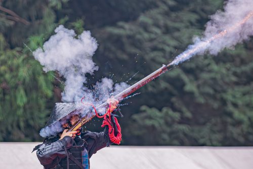 メイン会場では甲冑武者に扮した者約300名が八王子城跡に結集し、戦国時代の出陣式を再現した。さらに勇壮な火縄銃の発砲と和太鼓の演奏を行った。サブ会場では、各町会が模擬店を出し観客らと相互親睦を行った。
