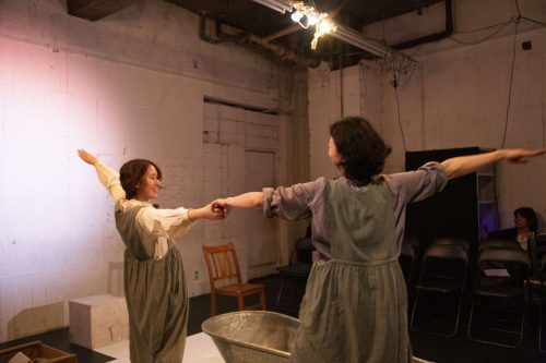 2025年10月23日〜11月2日にかけて、シャーロット・ジョーンズ作『エアスイミング』を上演した。1920年代の英国を舞台に、精神病院に収容された2人の女性の半世紀にわたる友情と希望を描いた二人芝居である。出演は小林桜子、加古みなみ、演出は安童有都。王子スタジオ1にて全12公演を実施し、延べ観客数は約225名にのぼった。上演後には観客との対話企画「哲学対話の会」も開催。創作過程では俳優・スタッフ間の対話を重ね、稽古場で生まれた言葉を「創作ノート」として発信するなど、創作から観客との交流まで「在り方を語る」ことを主軸に展開した。演劇によるエンパワメントを目的とする意欲的な自主企画となった。