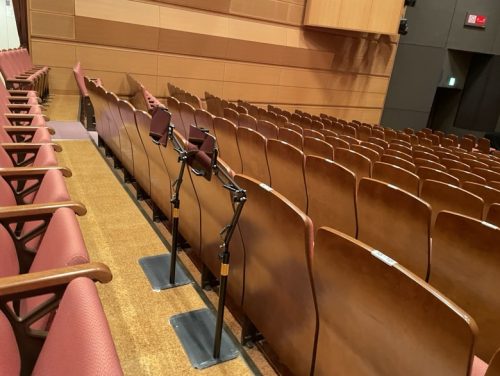 - 音声ガイド、字幕、台本貸し出し、車椅子対応