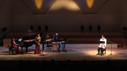 山川 寛子(サクソフォン)、植村 美有(ピアノ)、ジェラルド かわさき(パーカッション)