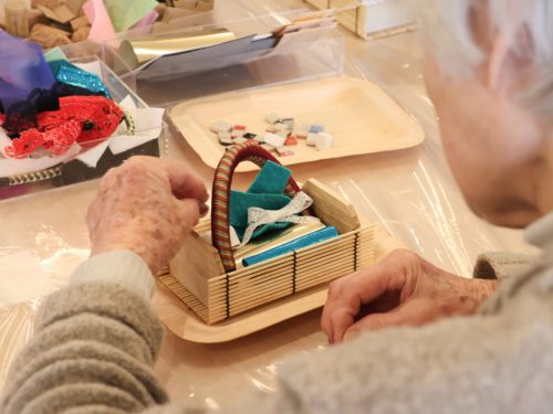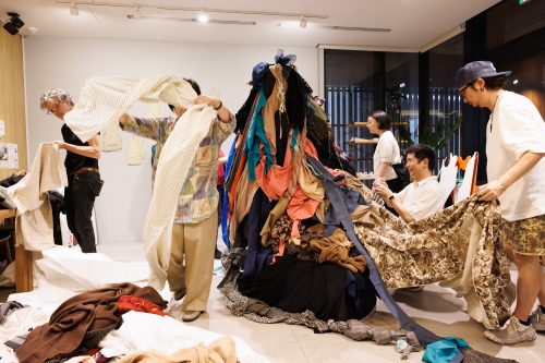 株式会社チャーム・ケア・コーポレーションが運営する介護付有料老人ホームにて、素材を通じた五感拡張の創作活動を実施。ご入居者の記憶や自己表現を引き出し、介護する側・される側という関係を超えた対話を創出した。また、福祉分野の実践者による勉強会を開催し、訪問看護や居宅介護支援を行う「株式会社シンクハピネス」、精神障がい者の福祉・就労支援「NPO法人コットンハウス、フレンズ」の代表者が登壇。社会におけるつながりのあり方、地域で暮らすことの意味や文化の役割を共有し、異分野・異世代の交流を促進した。さらに、美術家の力石咲さんをお迎えし、閉業したサトー洋裁教室の素材を用いて「引力 」をテーマに共同制作と成果展を実施。障害のある人を含む多世代の参加者が、共に創作表現する経験を創出した。