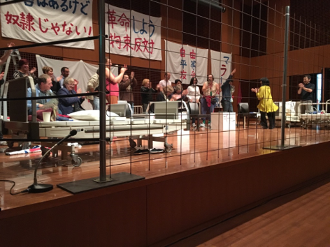 準備過程で離脱してしまった方が多くいたのが課題だという反省もあったが、耳を傾けていたファシリテーターの小川智紀さんは、「芸術による回復」を再確認したとコメントした。今後も東京ソテリアは精神科病院の長期入院者を地域社会に戻していくアプローチを続けながら、演劇の表現活動を通じた次の展開を探っていくとのこと。イタリアから来日したアルテ・エ・サルーテ劇団と日本人参加者が共演しての『マラー/サド』が実現する日を待ち望みたい。