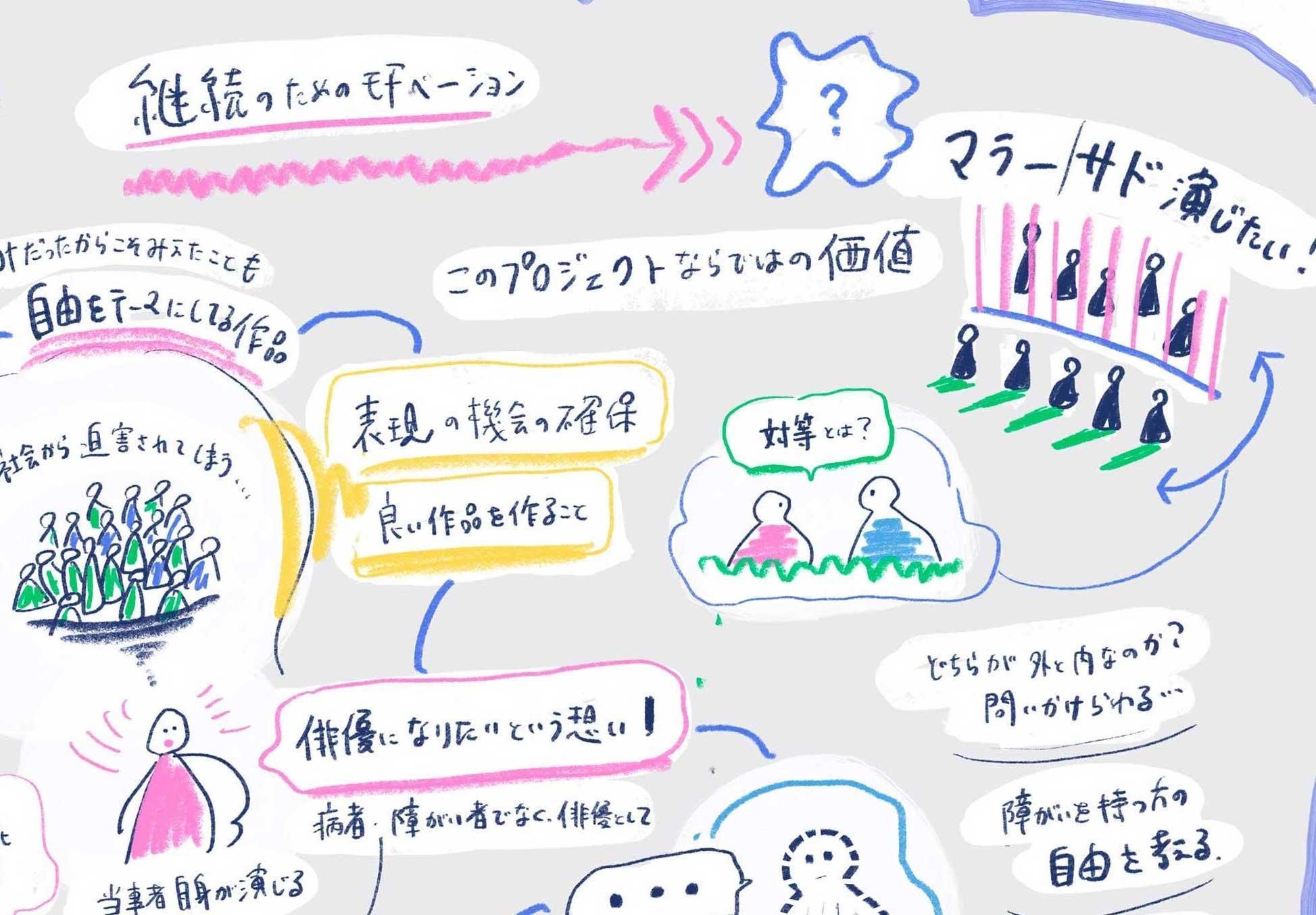 長谷川さんは「自分の人生と違う生き方を、演劇を通して生きるので、少し楽になったり、あるいは自分自身のこれまでを振り返ることになって、すごく苦しくなったり、障害がある、なしにかかわらず、演じるということや、役割とか、性別とか、それとまた別の生き方を知れることは有意義だなと思います」と答えた。また、塚本さんにとっては、支援者が変わっていく姿が印象的だったという。