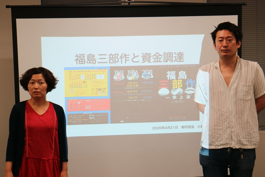 三世代、三つの家族の物語を通して、福島と原子力発電所の歴史を描いた連作を2年をかけて上演、のべ1万人の観客を動員。さらに、その戯曲が岸田國士戯曲賞、鶴屋南北戯曲賞(対象:第二部『1986年:メビウスの輪』)を受賞。劇団DULL-COLLORED POPの『福島三部作』は、間違いなく、2019年の日本の演劇界のニュースでした。この挑戦的な企画は、いったいどのようにして始まり、この理想的な成功に至ったのでしょうか? 今回の報告会では、「資金」を切り口に、創作と制作のバックステージが明らかにされました。