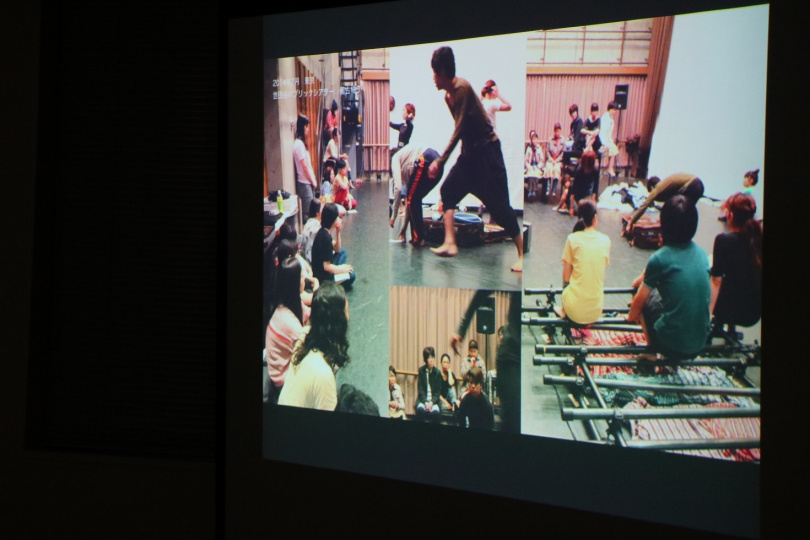 平成25年度の長期助成プログラム第1回に採択されたニブロールの『リアルリアリティ』は、矢内原美邦さんが振付する「ダンス作品」でありつつ、ダンスや舞台に関わる人たちを数多く巻き込み、思考と実験、実践を重ねる「プロジェクト」でもありました。報告会の第1部では、矢内原さんを中心に、映像を担当する高橋啓祐さん、音楽のSKANK/スカンクさんを交え、ニブロールの立ち上げ(1997年)から現在までの大まかな流れと、『リアルリアリティ』の創作のプロセス、そこで得た手応え、アジアでのワークショップ、公演に至るまでの流れが紹介されました。