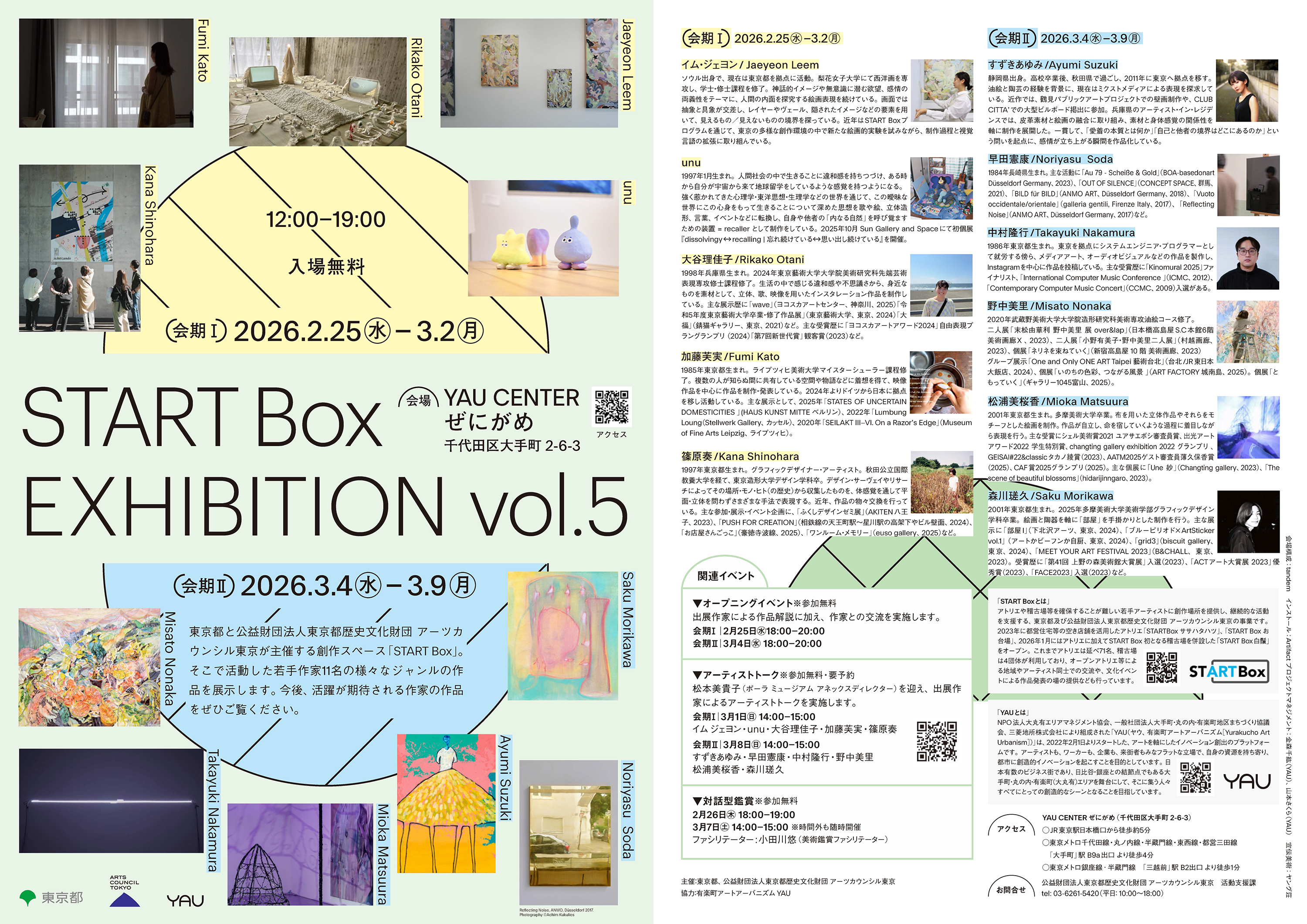 このたび、有楽町アートアーバニズムYAUの協力のもと、START Boxで活動する11名のアーティストの作品を紹介する「START Box EXHIBITION vol.5」を開催します。