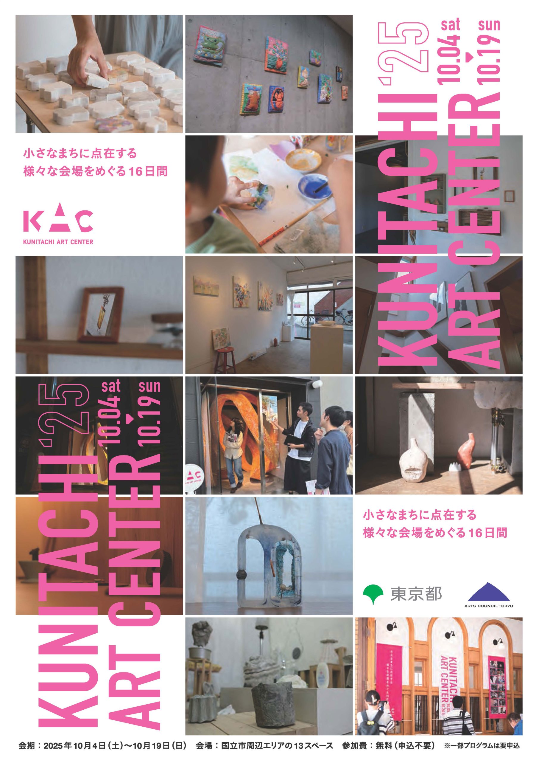 その一環として2025年10月4日(土)から10月19日(日)までの16日間にわたり、まちに点在する展示会場をめぐるアートイベント「Kunitachi Art Center 2025」を開催します。Kunitachi Art Centerの開催は今年で6回目を迎え、今回は国立市を中心に立川市、国分寺市にまで広がる13箇所の会場で、22組のアーティストたちが参加しています。会期中にはトークやツアー、ワークショップの成果発表、スタンプラリーなど関連プログラムも実施予定です。