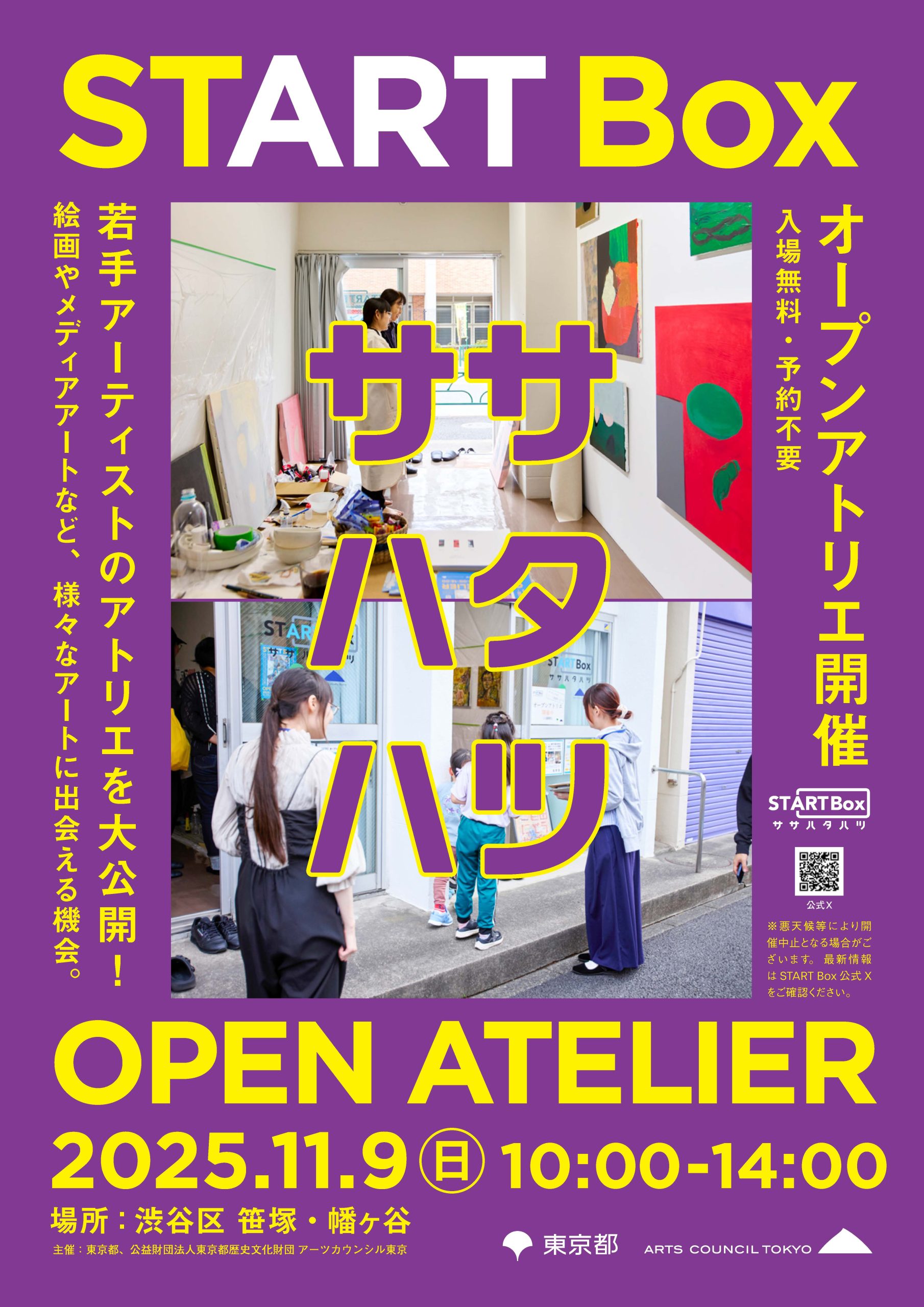 START Box ササハタハツで活動中の若手アーティストのアトリエを公開します。