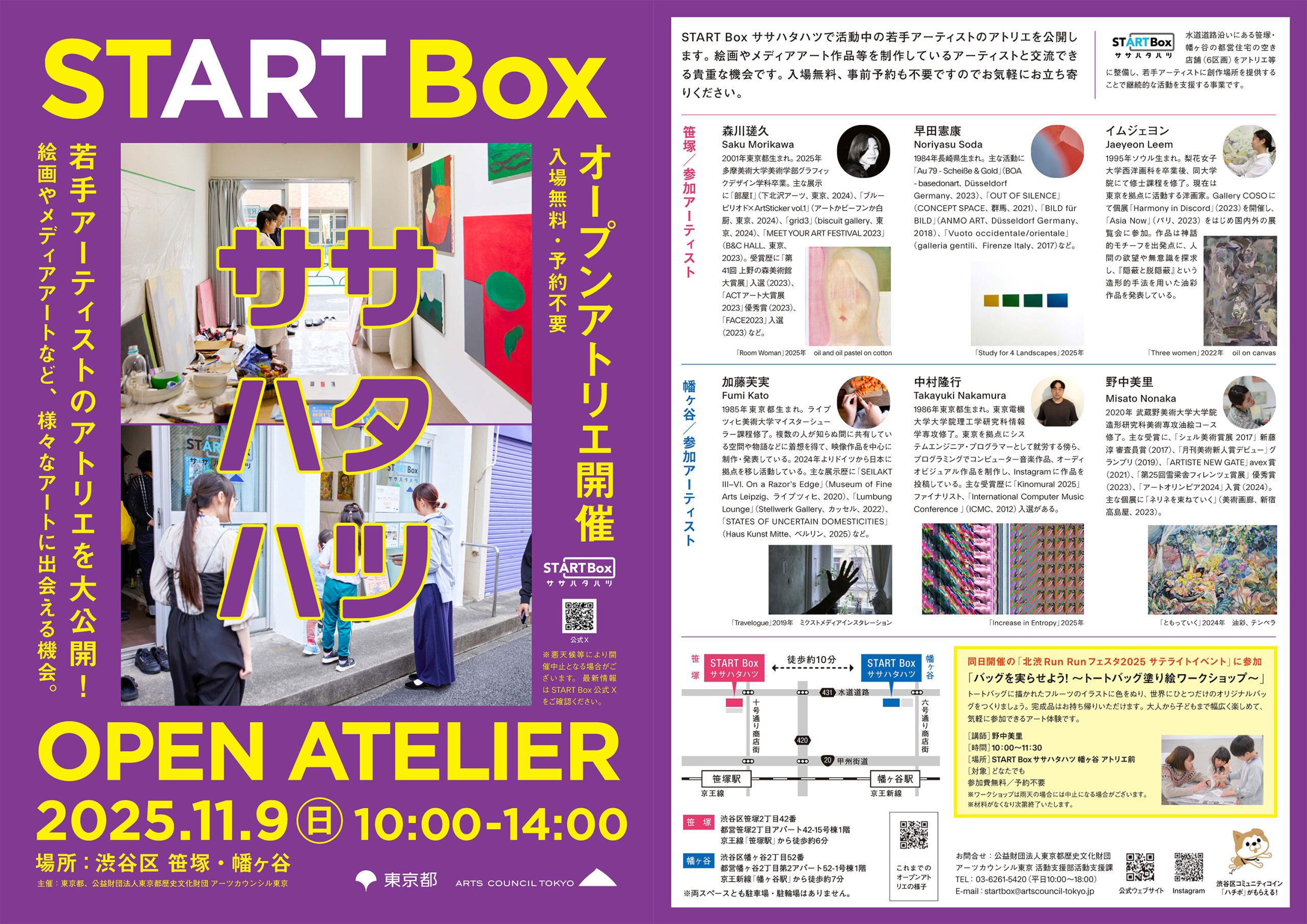 START Box ササハタハツで活動中の若手アーティストのアトリエを公開します。