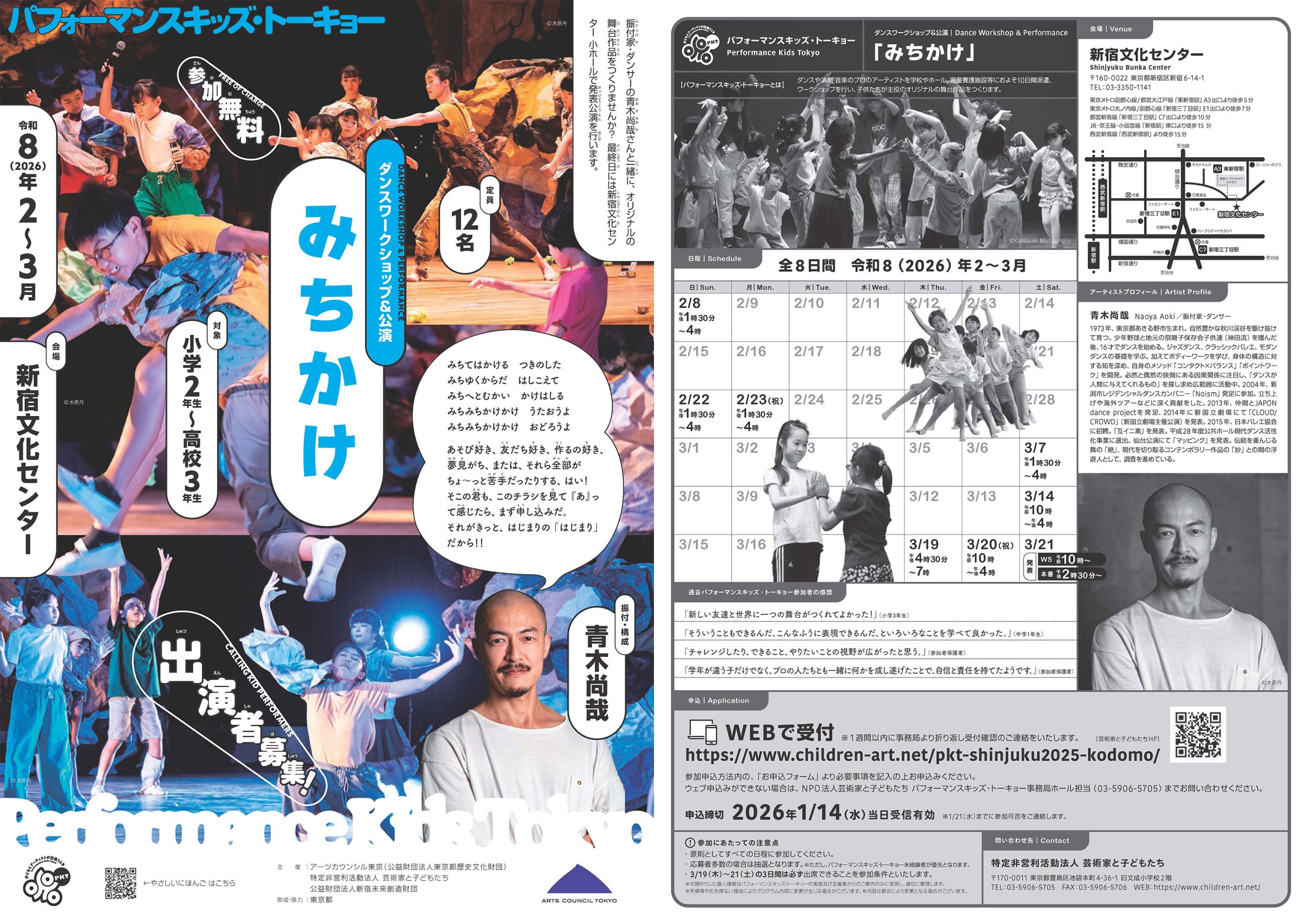 - 応募者多数の場合は抽選となります。(※ただしパフォーマンスキッズ・トーキョー未経験者が優先となります。)