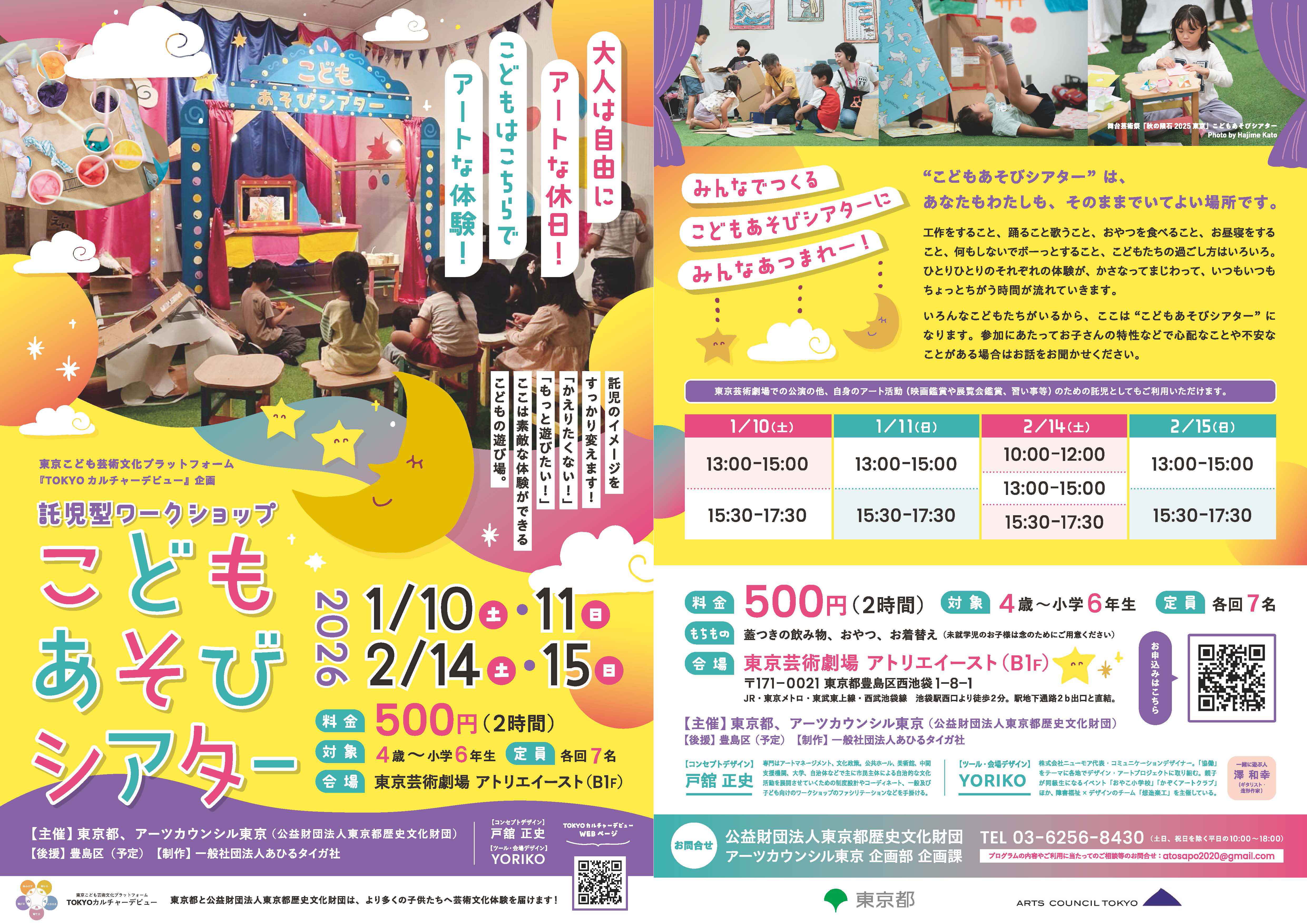 ※東京芸術劇場での公演の他、ご自身のアート活動(映画鑑賞や展覧会鑑賞、習い事等)のための託児としてもご利用いただけます。