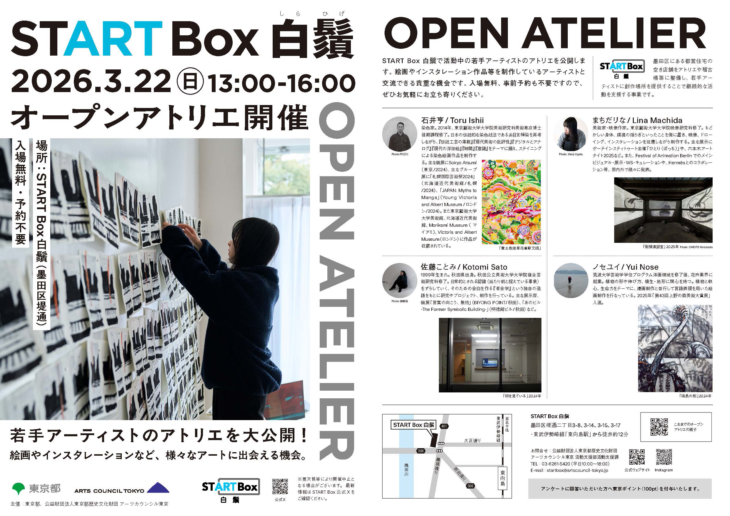 START Box 白鬚で活動中の若手アーティストのアトリエを公開します。