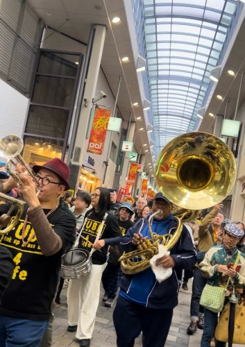 本事業は、Live Music JIROKICHIの50周年を契機として実施されたものであり、音楽を通じて地域と世界をつなぎ、高円寺の街全体で多文化交流を体感できる場を創出することを目的としていた。ニューオーリンズを代表するスーザフォン奏者Kirk Josephおよびスティールパン奏者Gregory Boydを招聘し、ライブハウスにおける公演やトークセッションに加え、ブラスバンドパレードや街角ライブを実施した。事業には、国内の第一線で活動するミュージシャンや地域のブラスバンド有志が参加し、スタッフはJIROKICHI運営スタッフおよび地域関係者で構成された。これらのプログラムを通じ、世代や国籍を超えた音楽交流が展開され、音楽文化の継承と次世代への橋渡しが図られた。